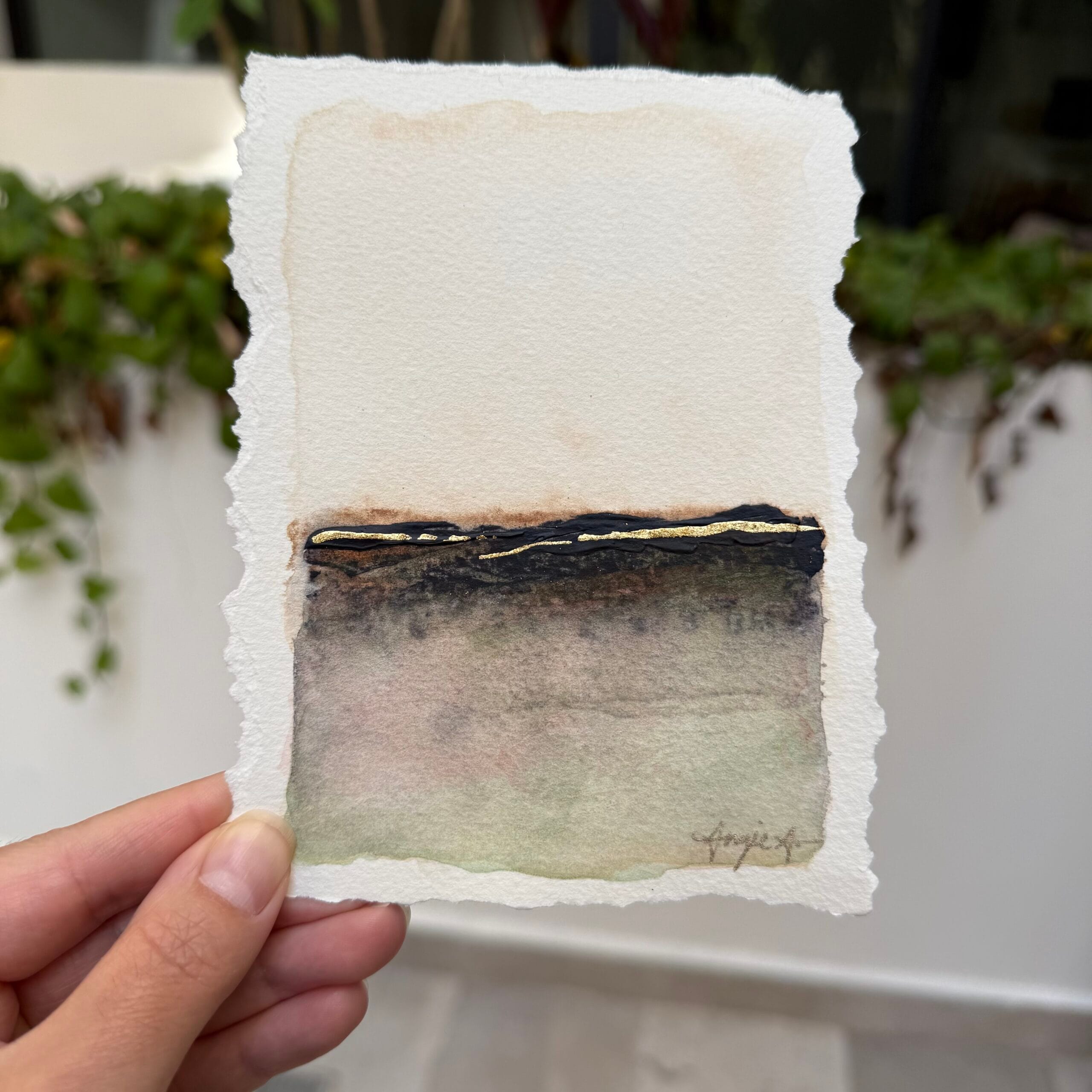 Acrylic and gold leaf on paper (4×6″). Frame (8×10″) included in price.