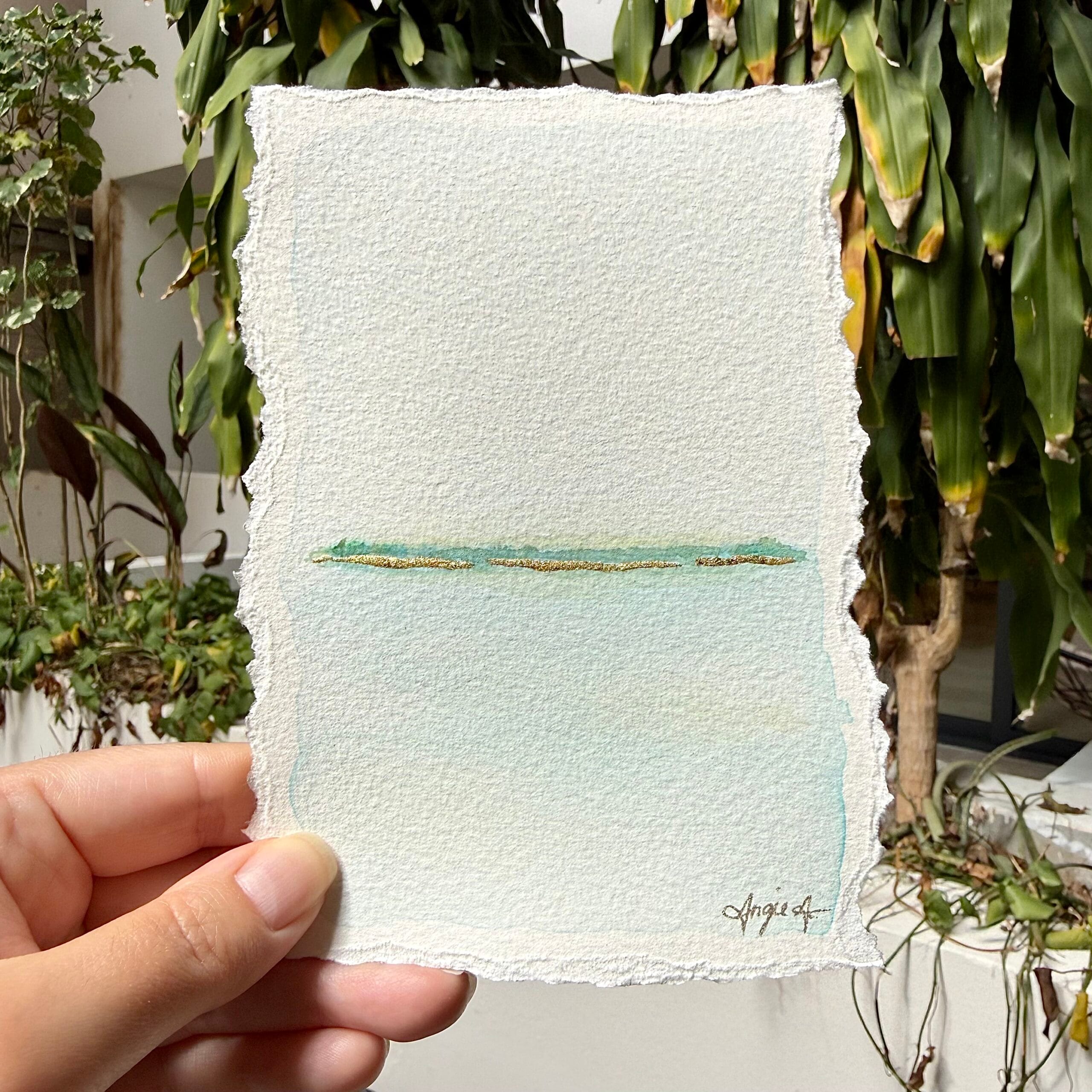 Acrylic and gold leaf on paper (4×6″). Frame (8×10″) included in price.