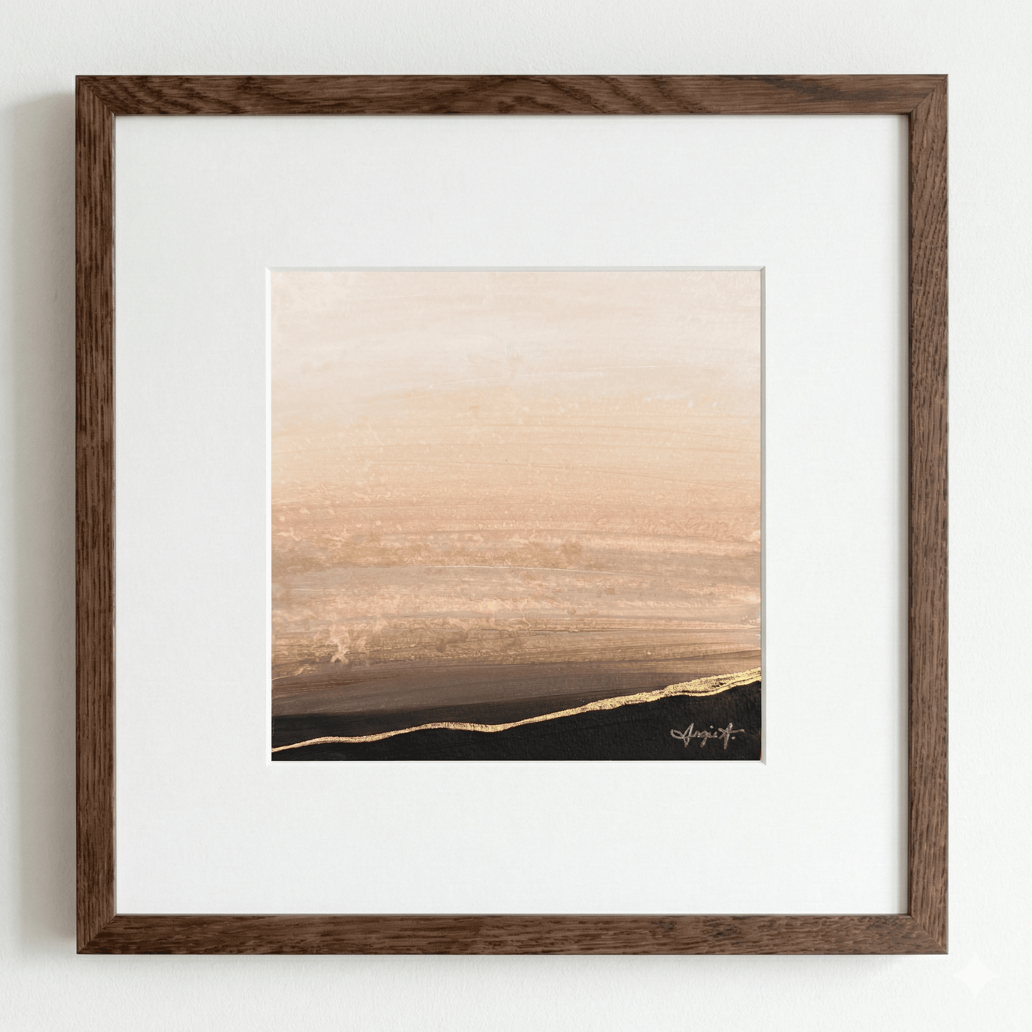 Acrylic and gold leaf on paper (6×6”). Frame (12×12”) included in price.