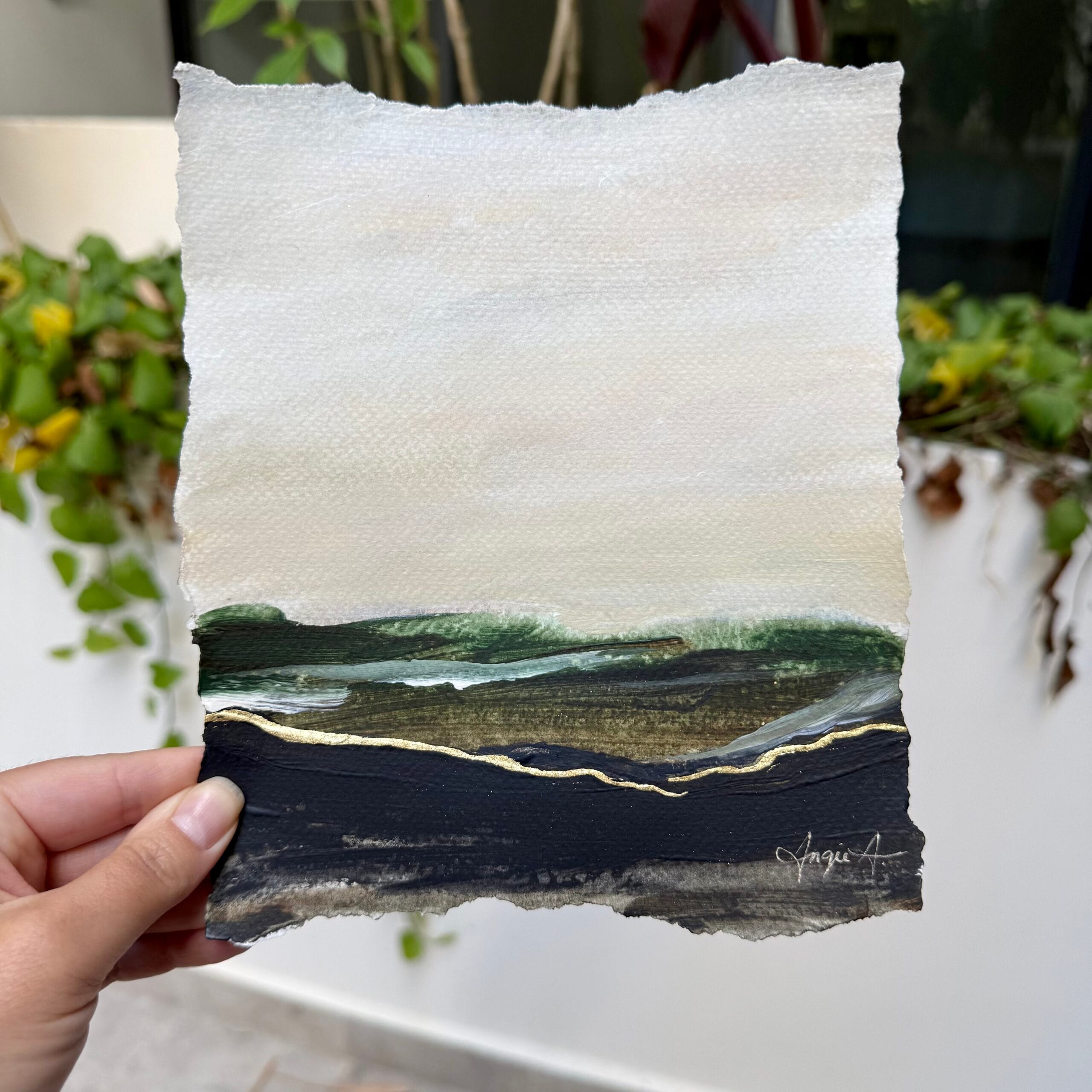 Acrylic and gold leaf on paper (6×8”). Frame (8×10″) included in price.