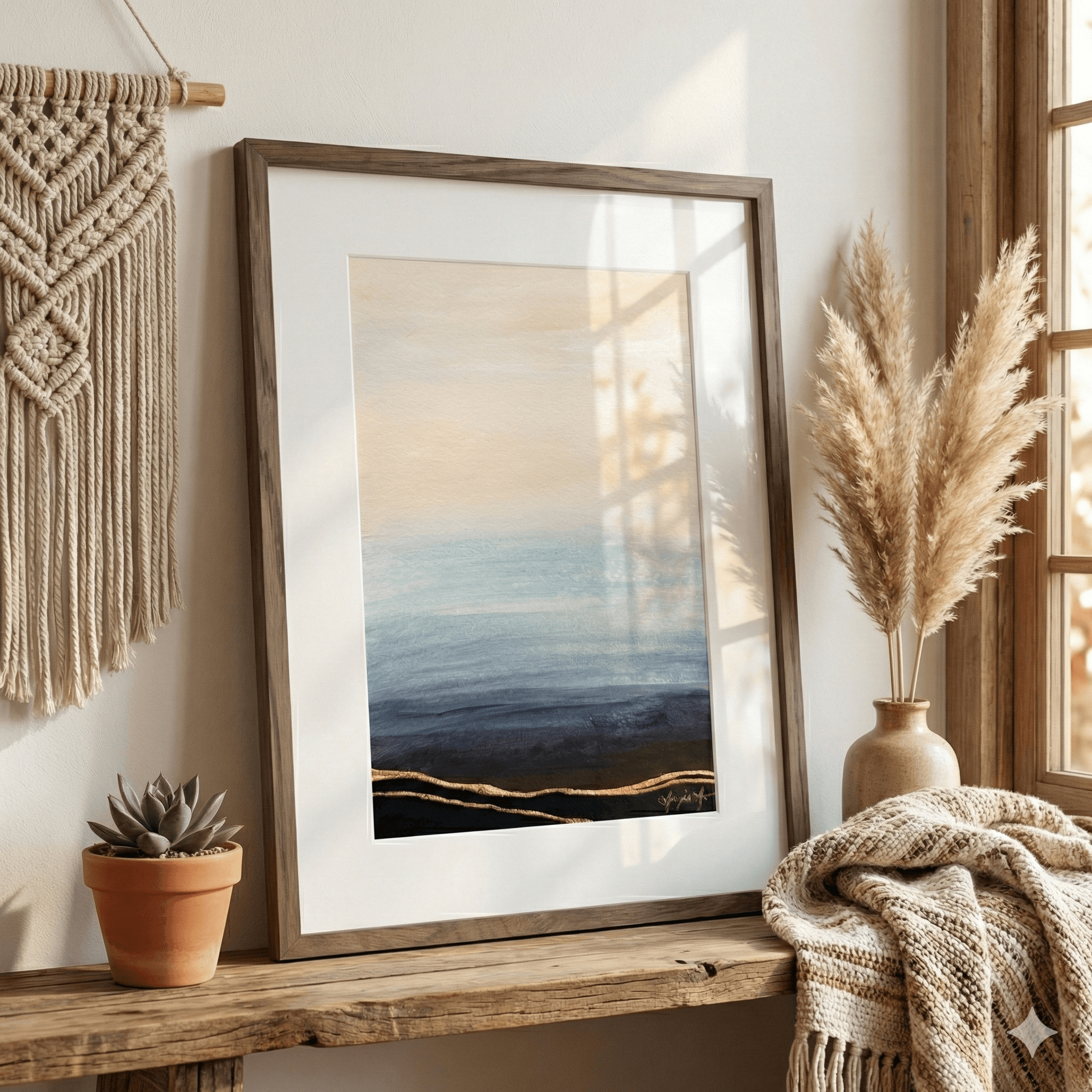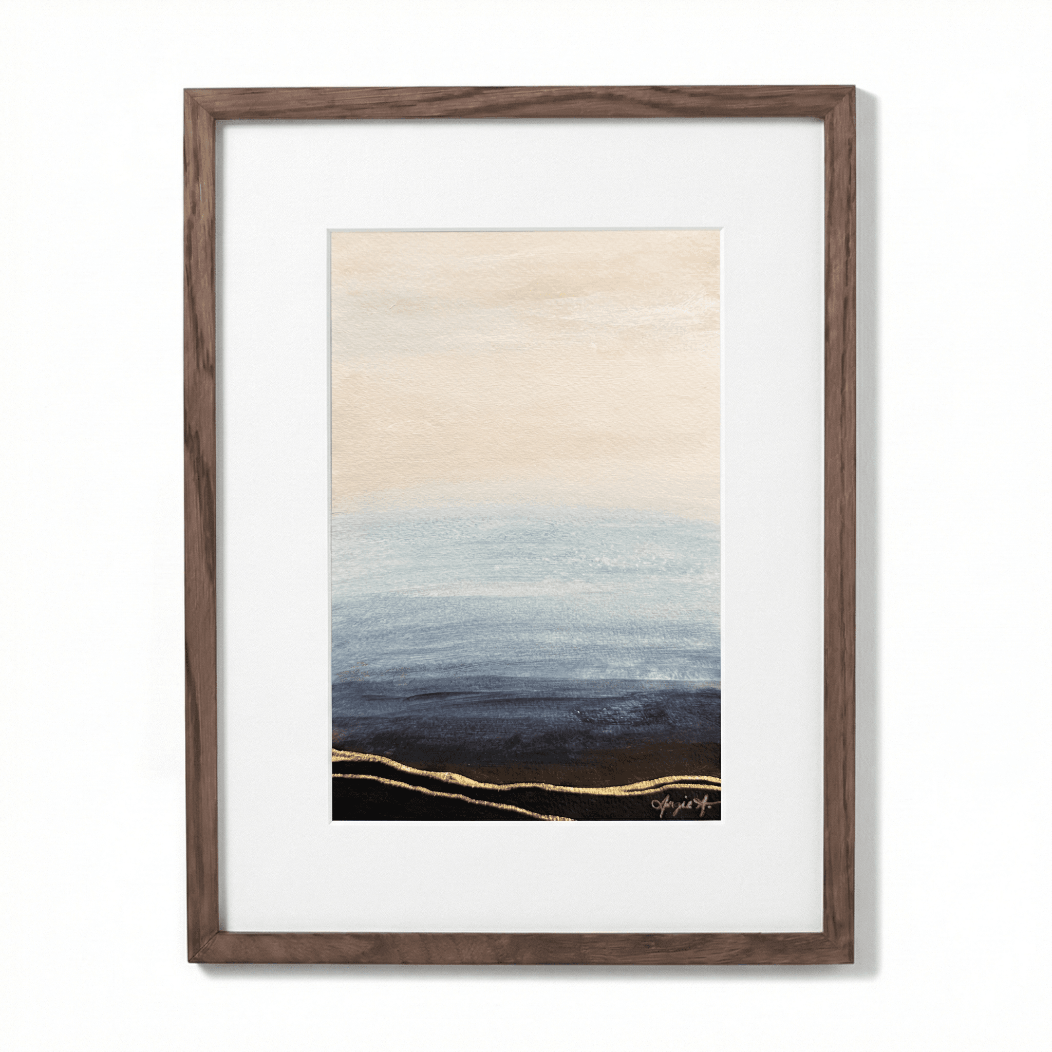 Acrylic and gold leaf on paper (5.5×8.5”). Frame (9×12”) included in price.