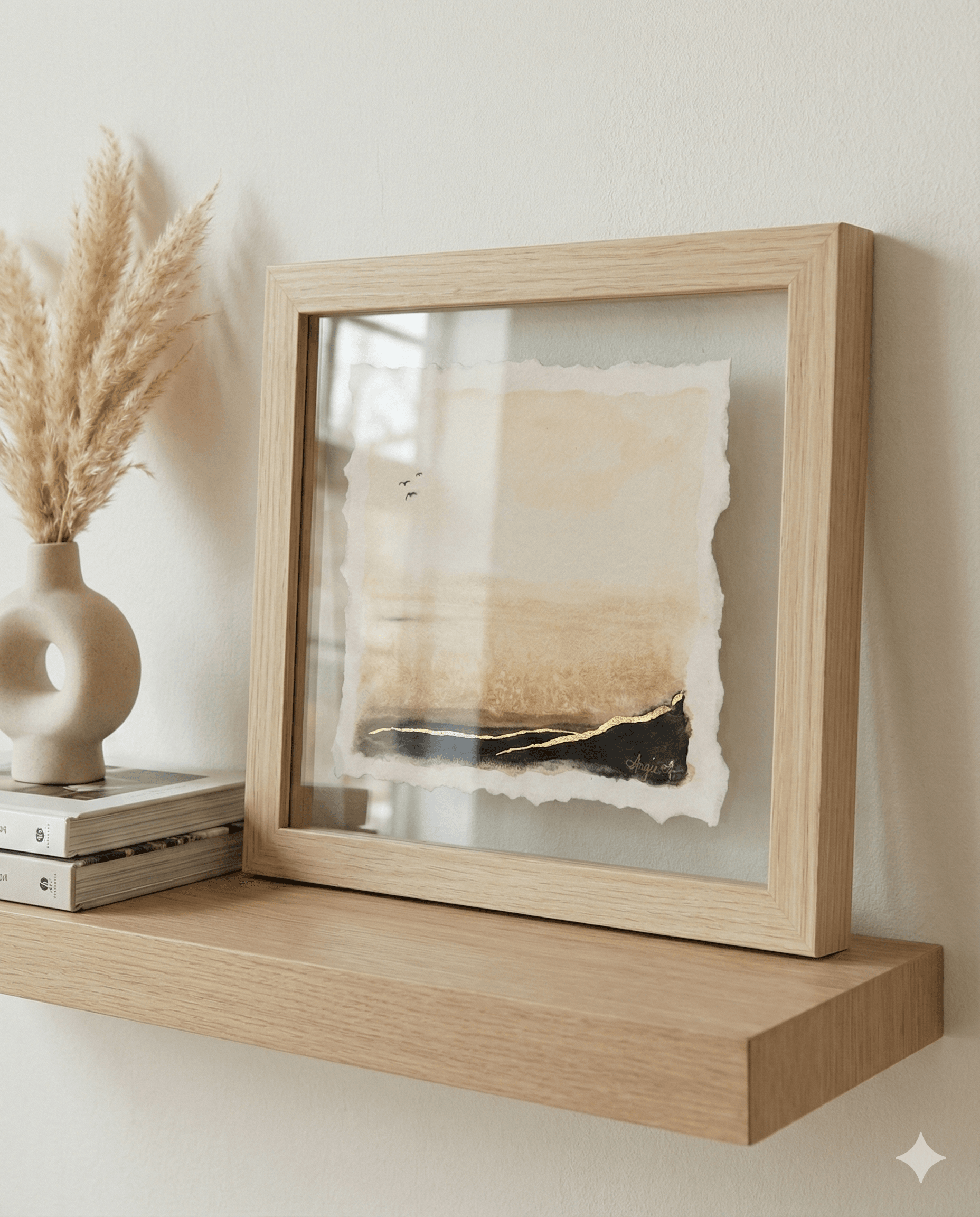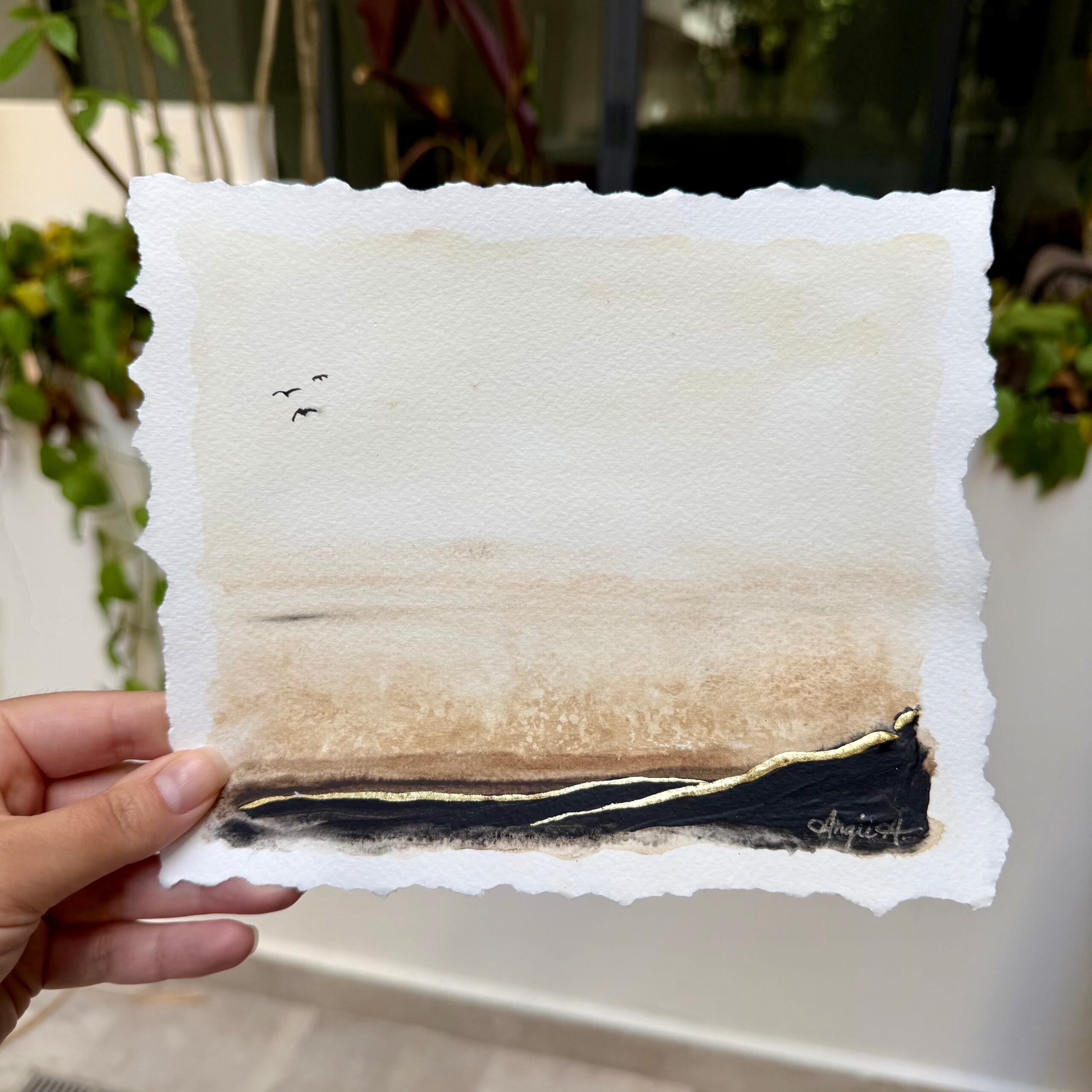 Acrylic and gold leaf on paper (6×8”). Frame (8×10″) included in price.