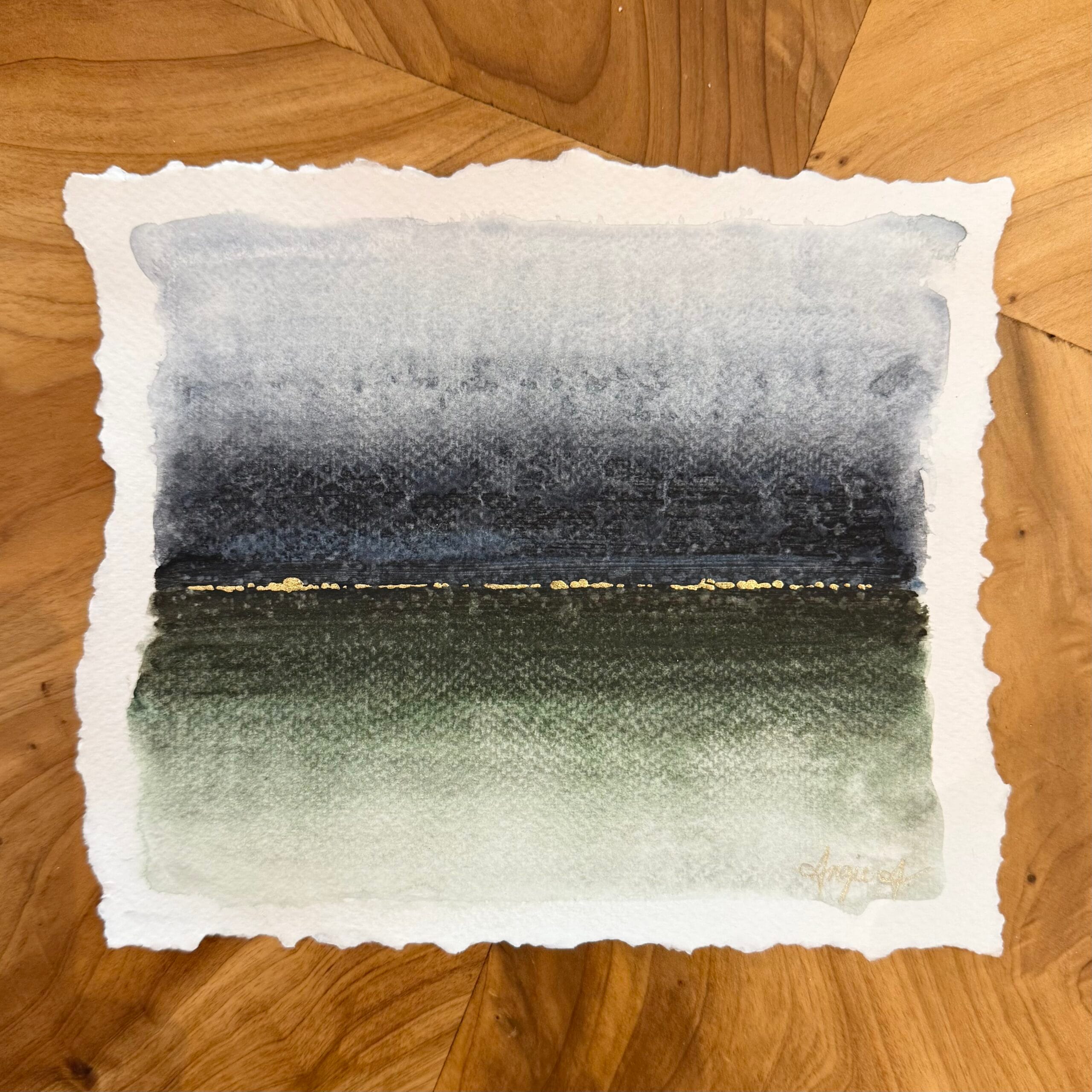 Acrylic and gold leaf on paper (6×8”). Frame (8×10″) included in price.