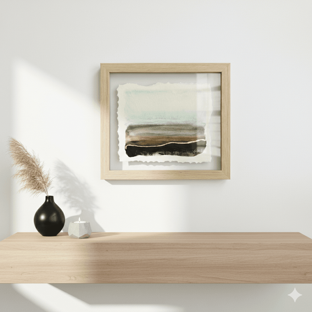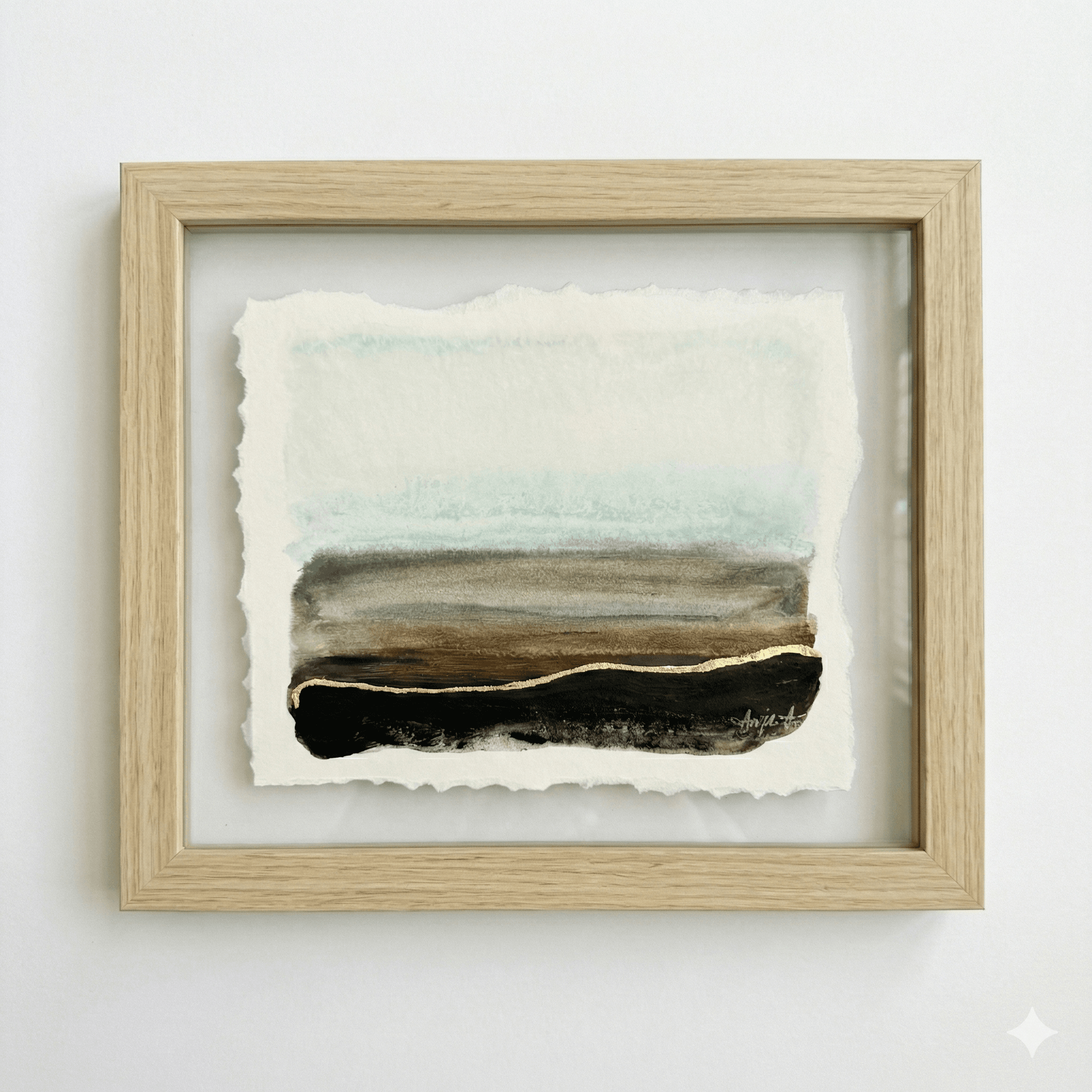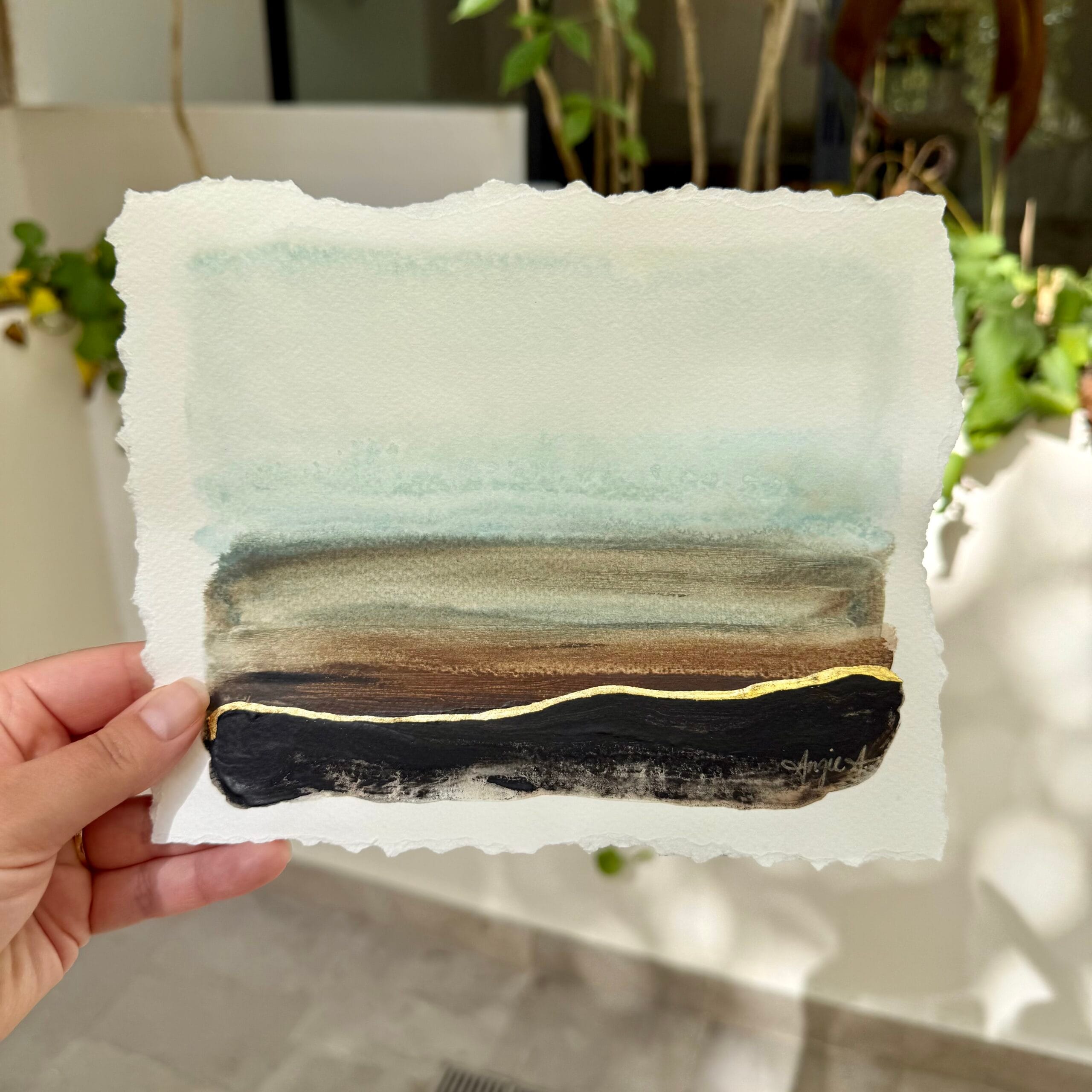 Acrylic and gold leaf on paper (6×8”). Frame (8×10″) included in price.