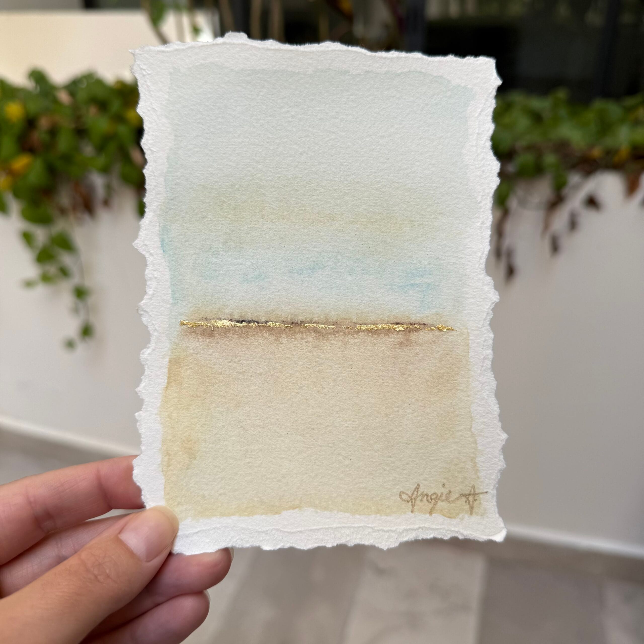 Acrylic and gold leaf on paper (4×6″). Frame (8×10″) included in price.